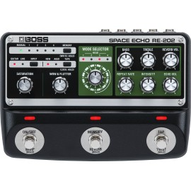 The RE-2 takes the Space Echo experience further with versatile features for today’s music. Delay time has been doubled and tap tempo control is supported, and there’s a cool Twist function for creating evocative special effects as you perform. For the dry sound, you can choose between the warm and fat RE-201 preamp tone or a clean signal with zero processing. Full stereo I/O is available, and it’s possible to mute the dry signal for parallel effect setups and studio use. The RE-2 also supports expanded control via external footswitches or an expression pedal, including continuous pedal control of multiple panel functions at once.