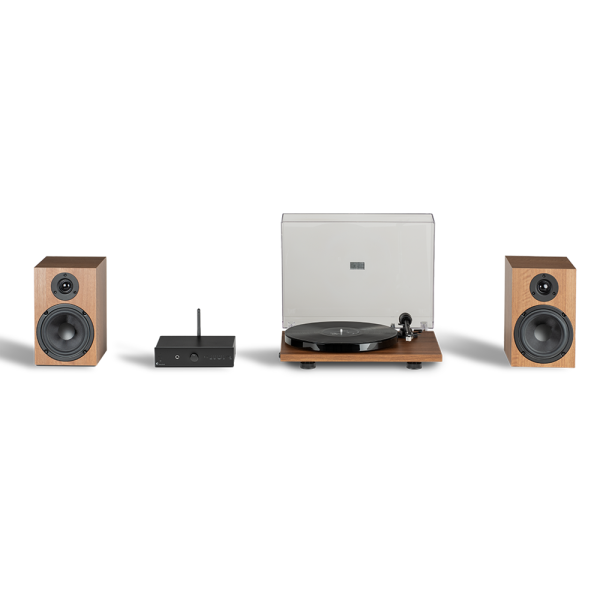 The heart of this set, the E1 turntable is crafted for smooth, detailed vinyl playback. Equipped with a pre-set aluminium tonearm and a robust, vibration-damping design, the E1 provides a warm, natural sound that’s true to the original recording. Available in two finishes for this set - Black and Walnut - this turntable offers a stylish addition to any home.